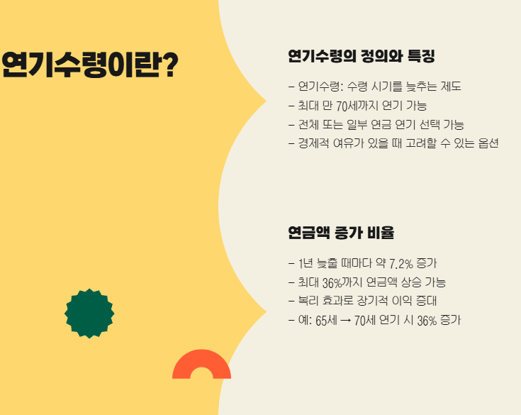 - 연기수령: 연금을 나중에 받는 대신 더 많은 금액을 받는 제도