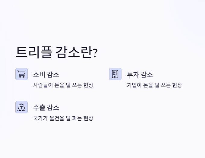 ‘트리플 감소’는 말 그대로 경제의 3대 축인 소비·투자·수출이 동시에 줄어드는 현상을 말합니다.